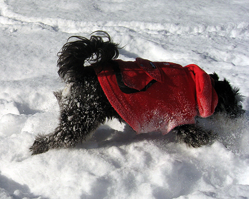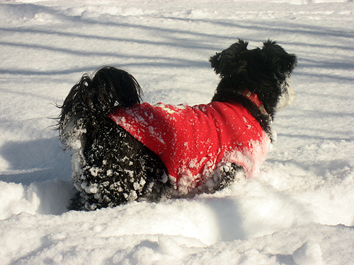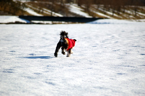この前積もった雪は表面が硬くなっていて、リボンぐらいの体重だと足跡も付きません